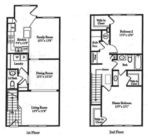 VI 2a Two Bedroom, One & Half Bath - Floorplan 1 3 Bedrooms