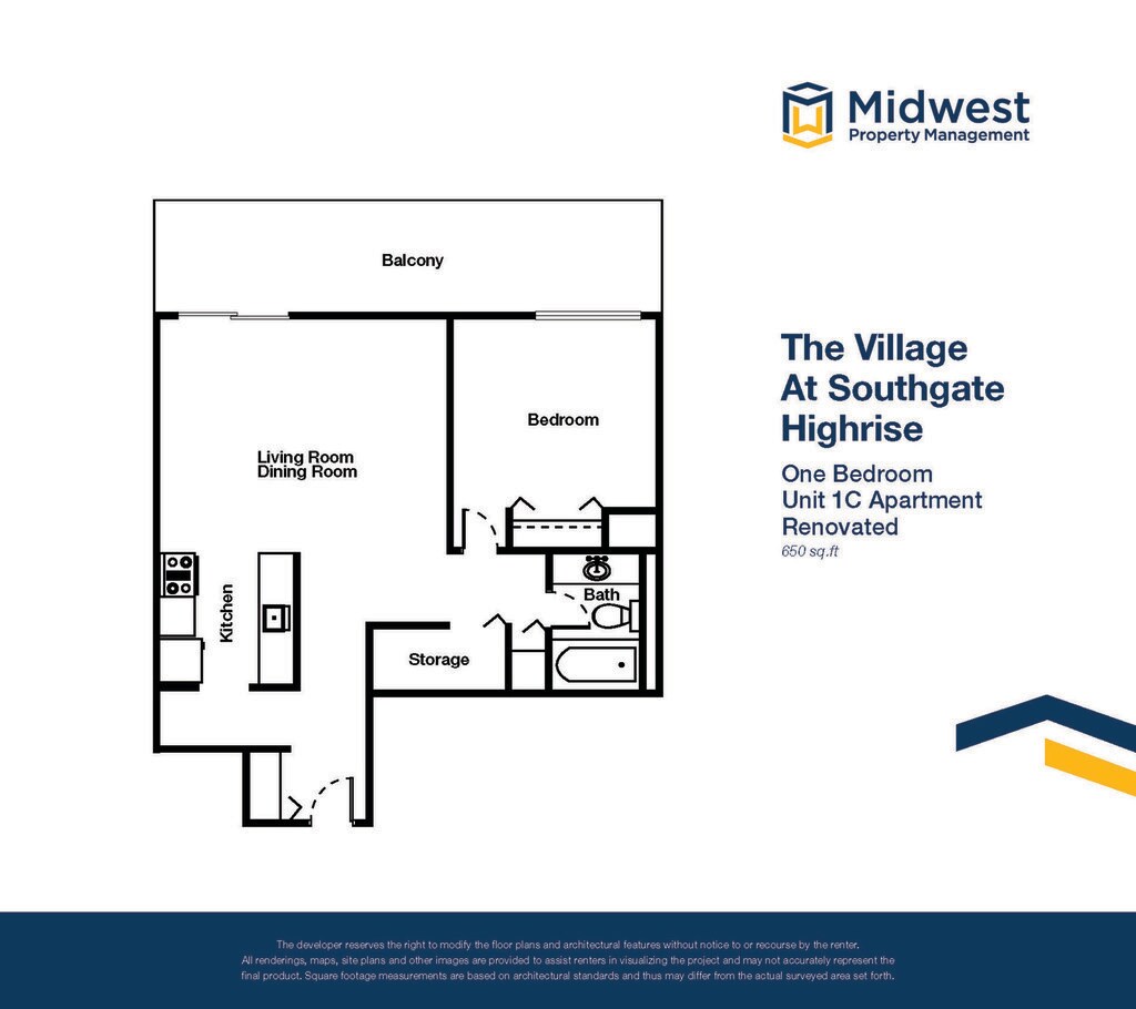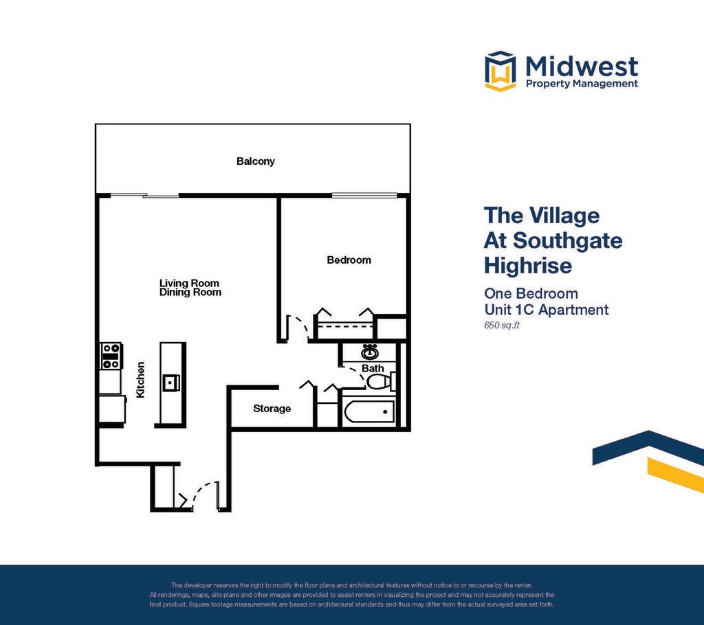 Apartment Model: 1 Bedroom Small Highrise1 Bedroom, 1 Bath, 650 sq ftAvailable Now![]()