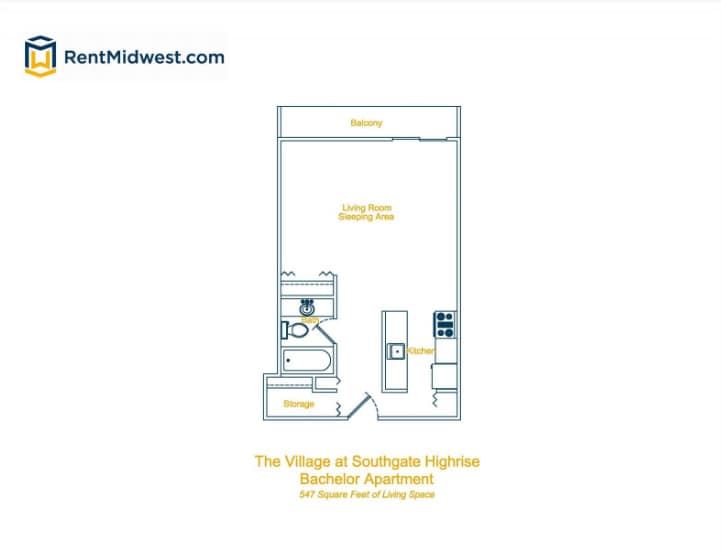 Apartment Model: Bachelor HighriseStudio, 1 Bath, 547 sq ftUnavailableBachelor Highrise - Floorplan 1 1 Bedroom