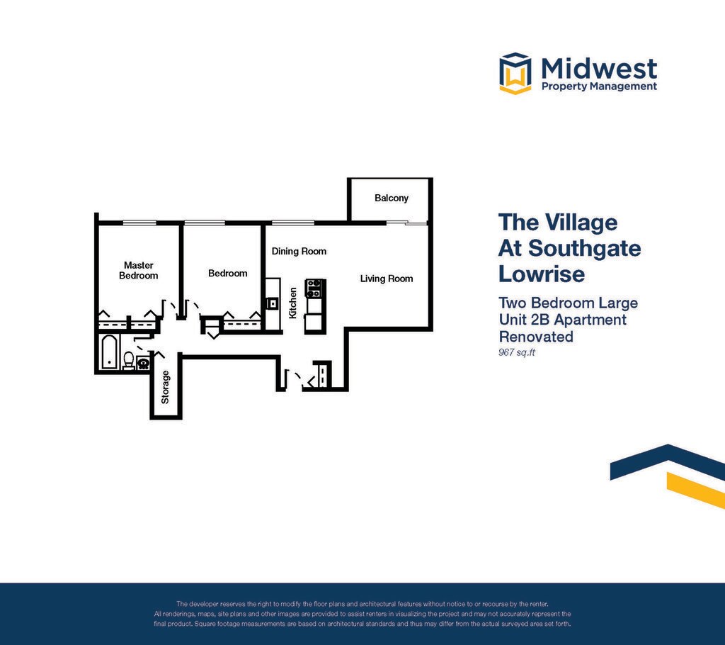 Apartment Model: 2 Bedroom Large Lowrise Renovated2 Bedroom, 1 Bath, 967 sq ftUnavailable![]()