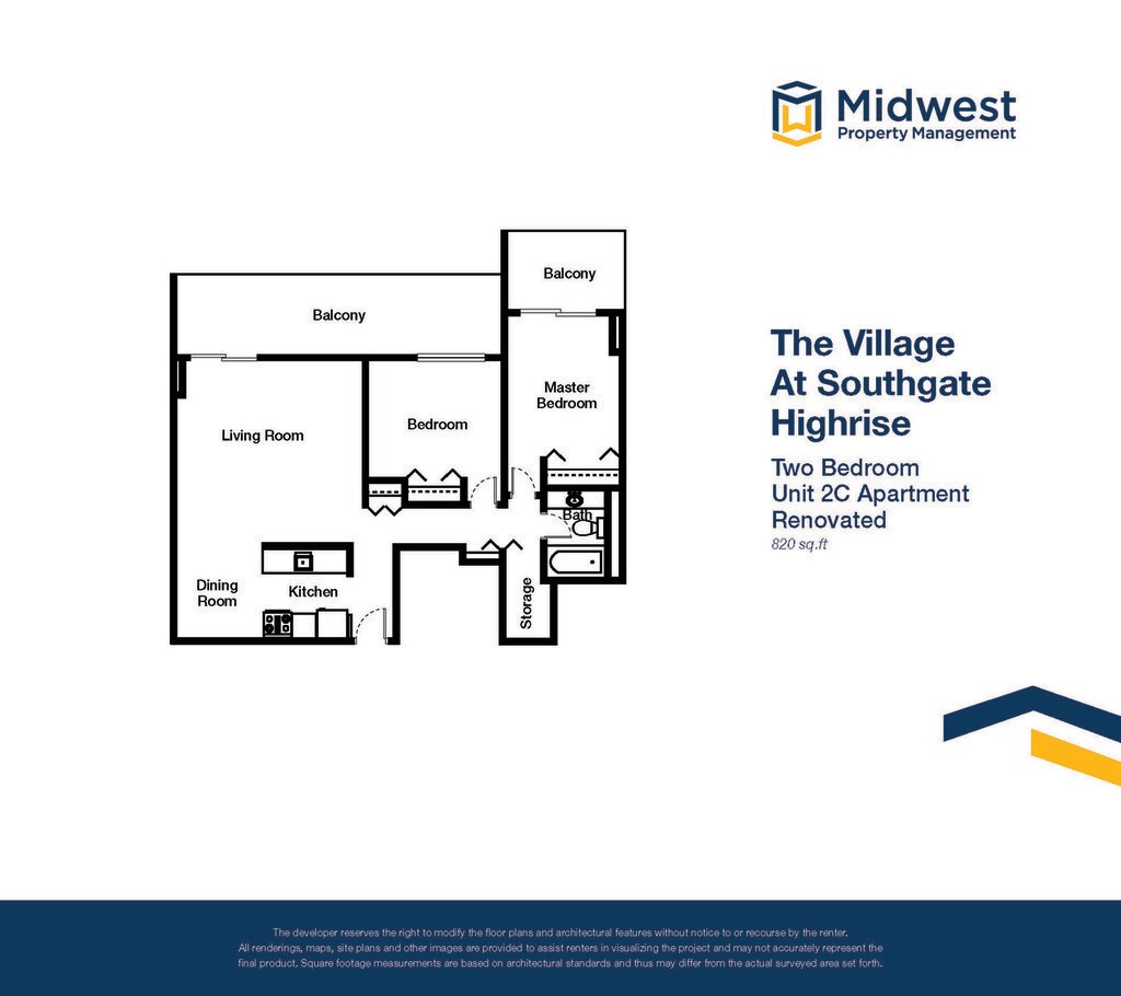Apartment Model: 2 Bedroom Small Highrise Renovated2 Bedroom, 1 Bath, 820 sq ftUnavailable![]()