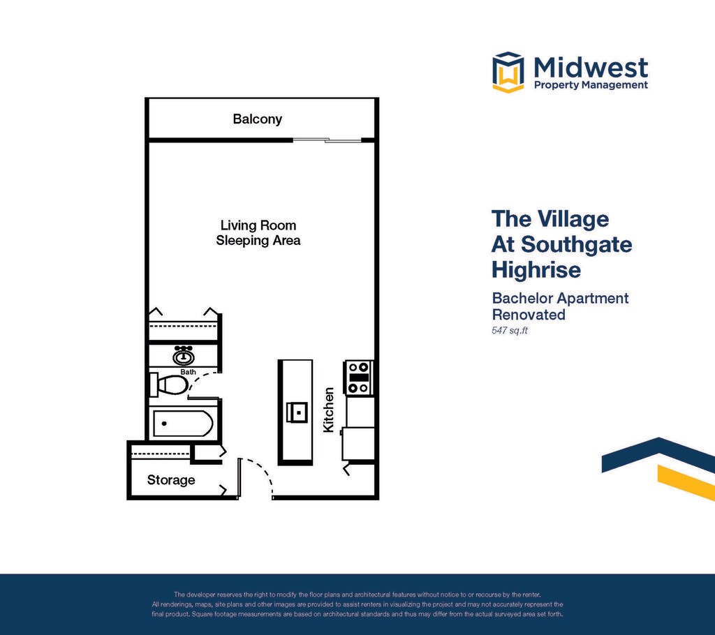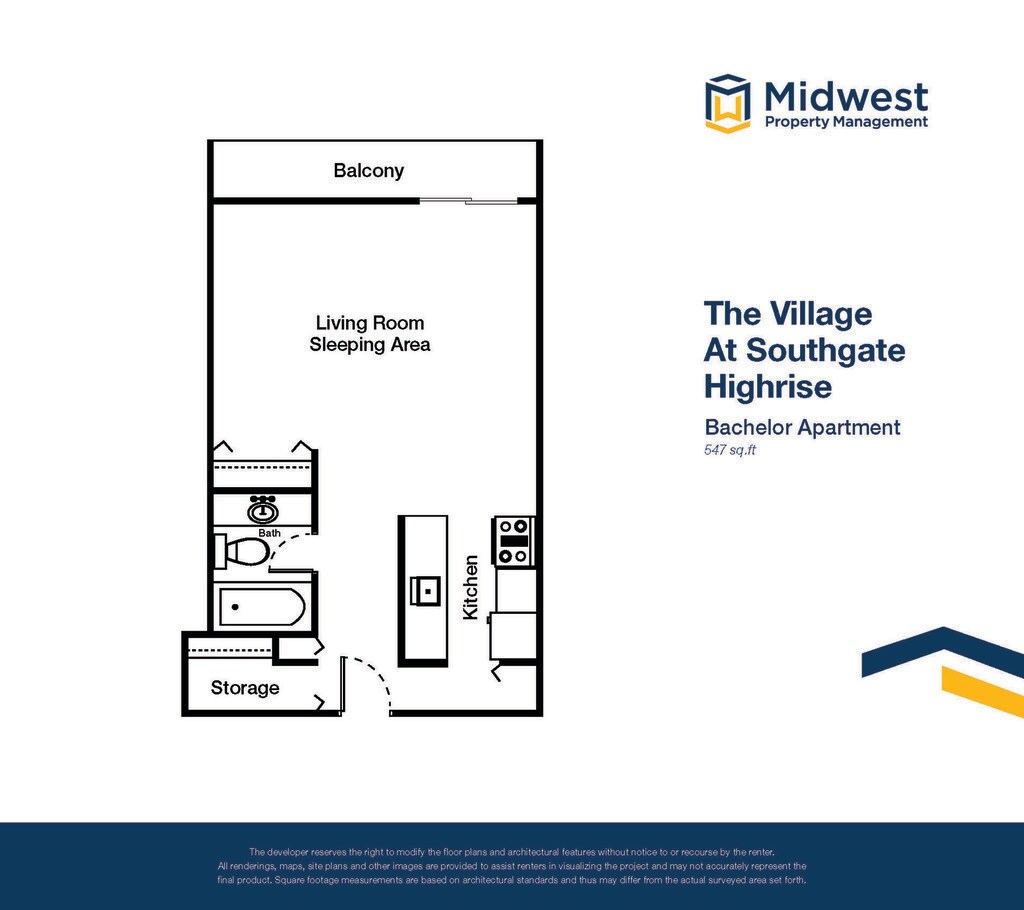 Apartment Model: Bachelor HighriseStudio, 1 Bath, 547 sq ftAvailable January 31, 2026![]()
