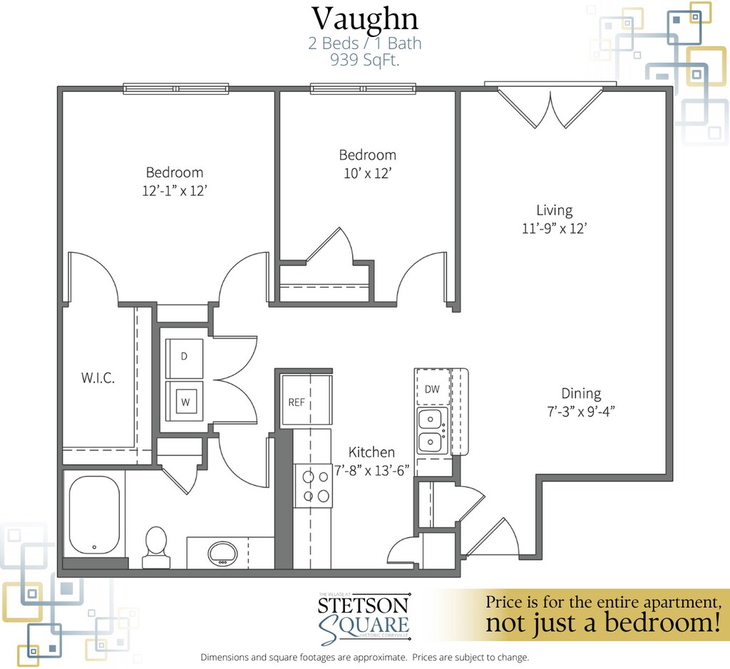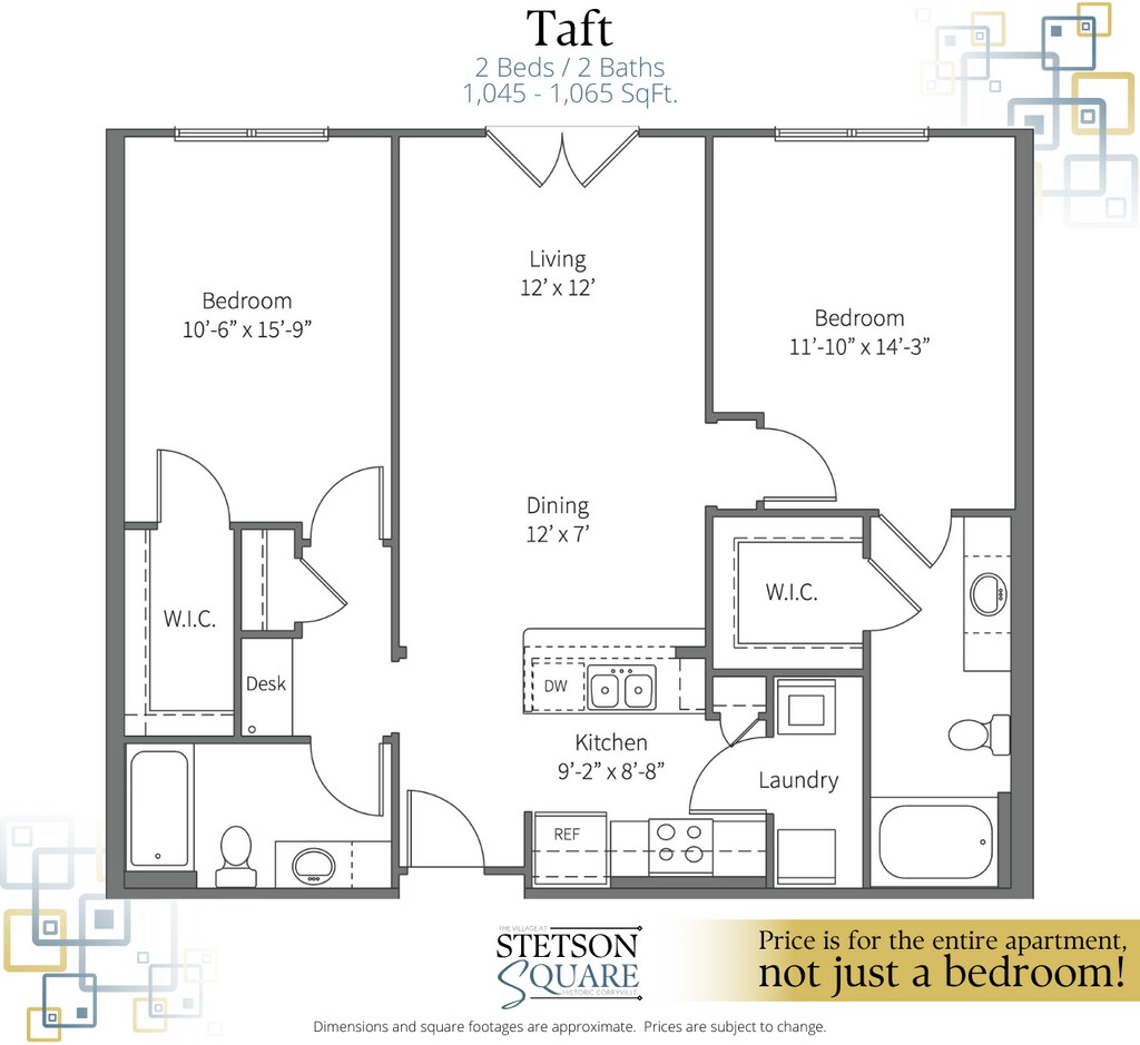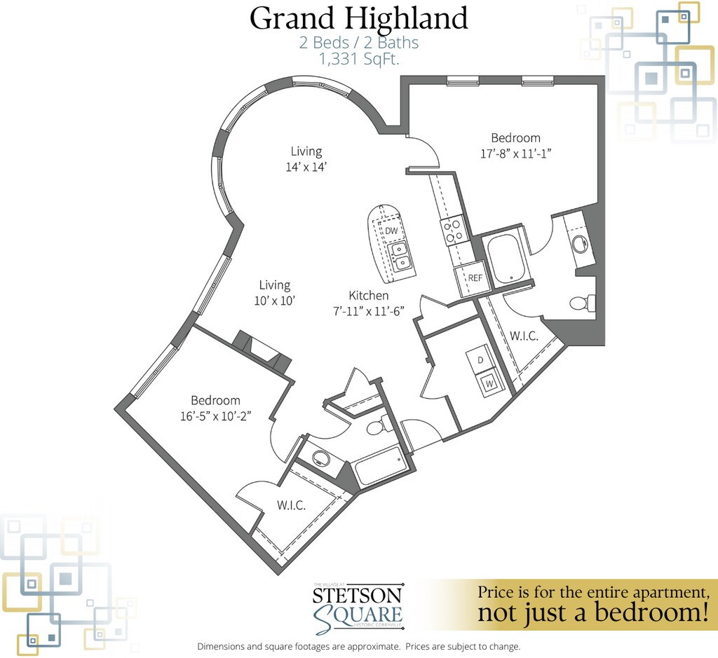 1 Bedroom to 2 Bedroom Apartments at The Village at Stetson Square currently range from $1,825 to $2,575