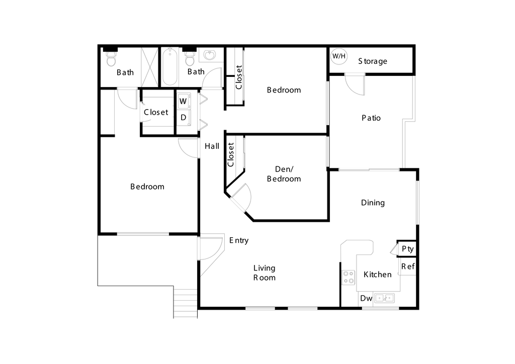 Apartment Model: The Estrella$1,2482 Bedroom, 2 Bath, 950 sq ftAvailable NowThe Estrella - Floorplan 1 3 Bedrooms