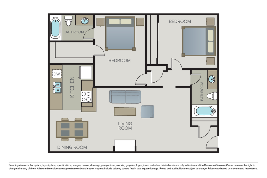 2 Beds, 2 Baths, 1000 sq ftAvailable NowModel Gallery