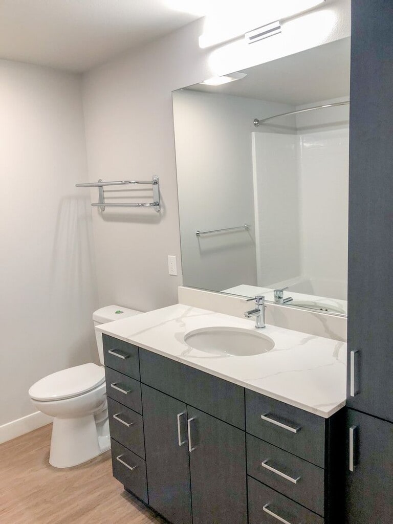 The Village at Westgate is the future of urban living designed so you can live, work and play in the new center of Edmonds surrounded by shopping, inspiring cuisine, and local entertainment within walking distance. Bus routes around the corner offer a direct commute to downtown Seattle, Edmonds-Kingston Ferry, and Lynnwood Transit Center. We are in Westgate Village Shopping Center, which means you have convenient access to a plethora of retail, services, and eateries. The community is comprised of studio, open one, and one & two-bedroom apartment homes with a variety of floor plans. Our distinctive apartments feature floor-to-ceiling windows, high-efficiency stainless steel appliances, slab quartz countertops with backsplash, air-conditioning ports, smart lock keyless entry, washers and dryers, spacious balconies, and luxury vinyl flooring throughout. Residents enjoy an array of community amenities including ButterflyMX smart video callbox, Stratis mobile app with community & apartment access, Luxer One controlled-access package room, fully equipped Matrix fitness center, two top floor lounges with an entertainer's kitchen & barbecue area, large screen entertainment center, game room, and laptop bar with free Wi-Fi. Our pet-friendly community also has an outdoor pet area & pet wash, bike storage with a repair station & outdoor bike wash, a controlled-access garage with electric car charging stations, and storage lockers. The Village at Westgate is proud to be LEED Silver certified and is smoke-free, constructed to the highest level of sustainability, providing electricity cost savings, lower carbon emissions, and a healthier environment for you to love where you live.