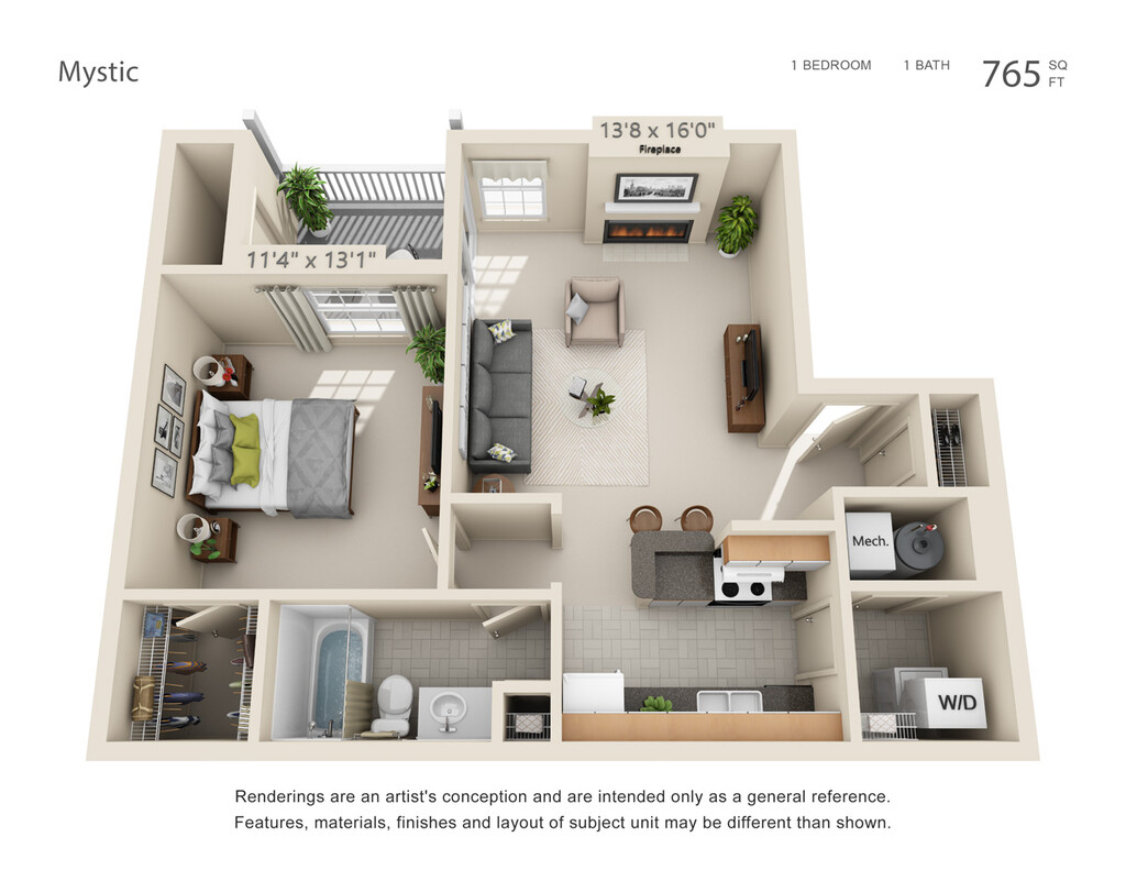 1 Bed, 1 Bath, 765 sq ftTotal Monthly PriceAvailable NowModel Gallery