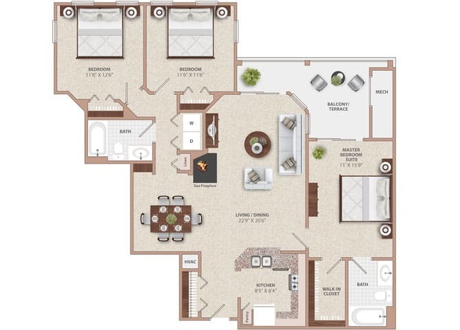3 Beds, 2 Baths, 1291 sq ftAvailable NowModel Gallery