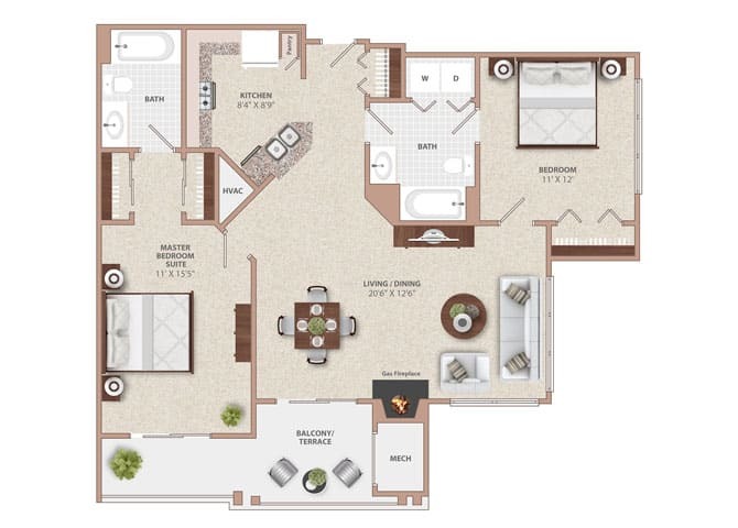 2 Beds, 2 Baths, 1030 sq ftAvailable NowModel Gallery