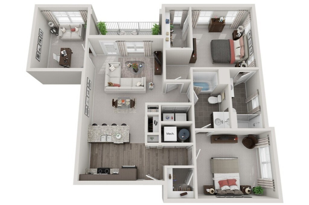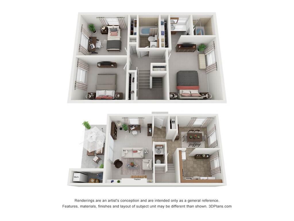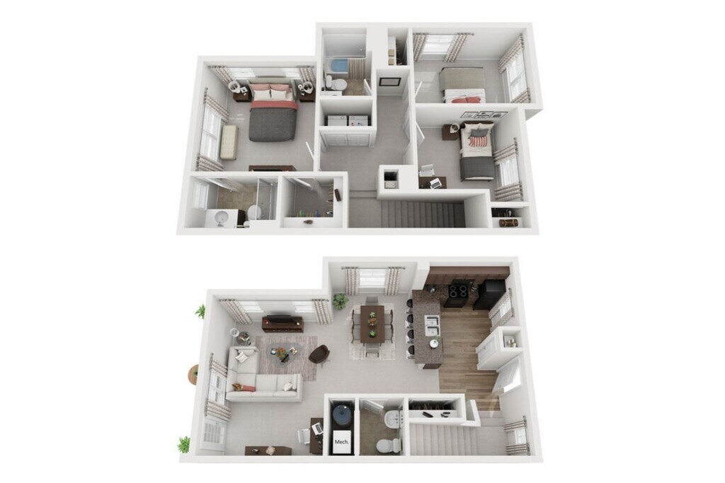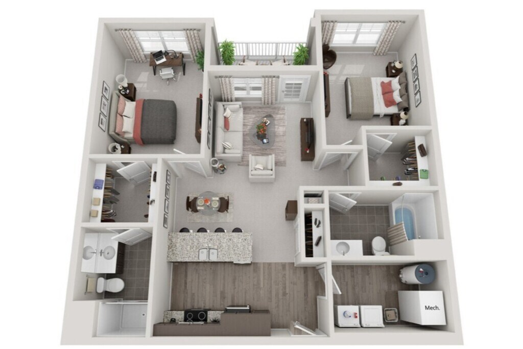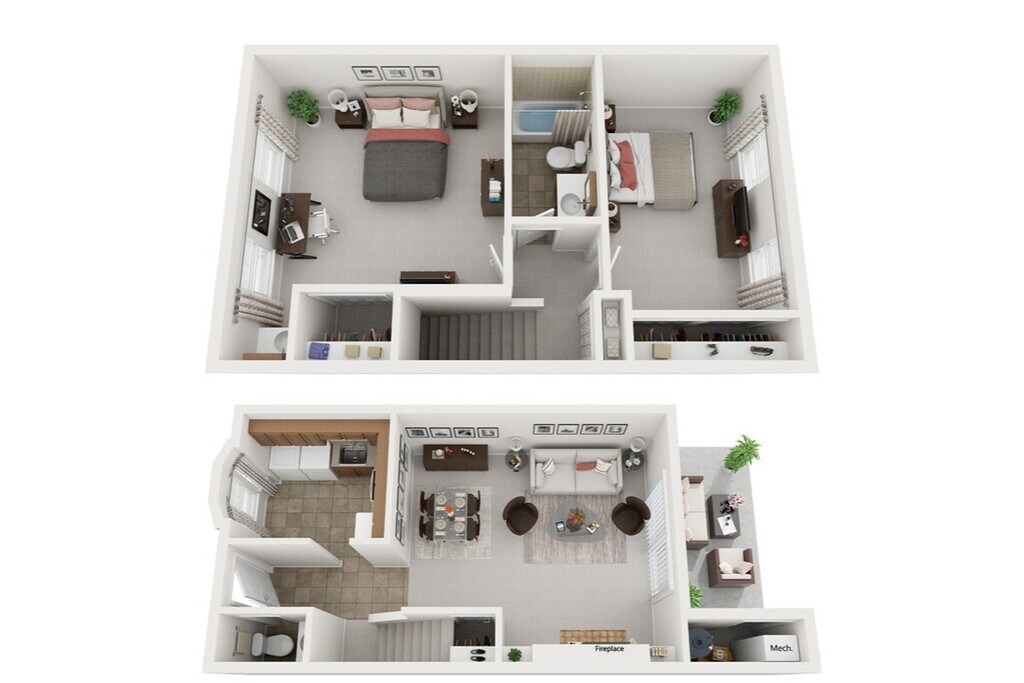 2 Beds, 1.5 Baths, 1055 sq ftModel Gallery