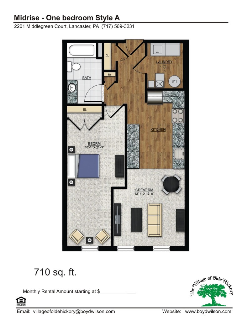 1 Bed, 1 Bath, 710 sq ftModel Gallery
