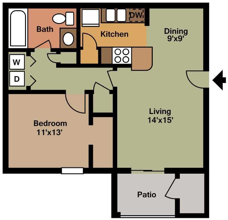 Apartment Model: A4 - The Dogwood$9871 Bedroom, 1 Bath, 740 sq ftAvailable Now![]()