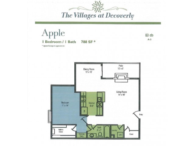 Apple - Floorplan 1 Apartment Unit: 9805-OApartment Model: Apple$2,0891 Bedroom, 1 Bath, 788 sq ftAvailable December 4, 2025Azalea