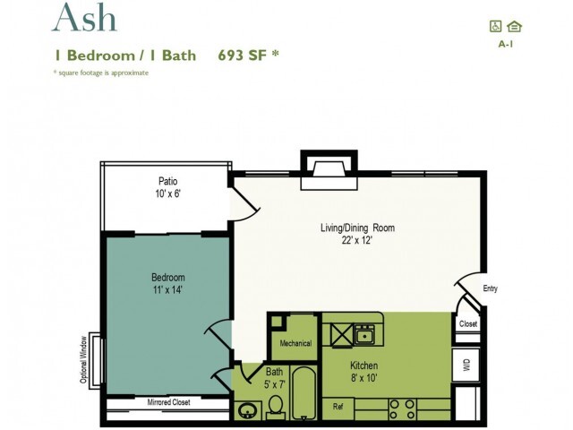 Ash - Floorplan 1 Apartment Unit: 9921-GApartment Model: AshFrom $1,7561 Bedroom, 1 Bath, 693 sq ftAvailable December 4, 2025Apple