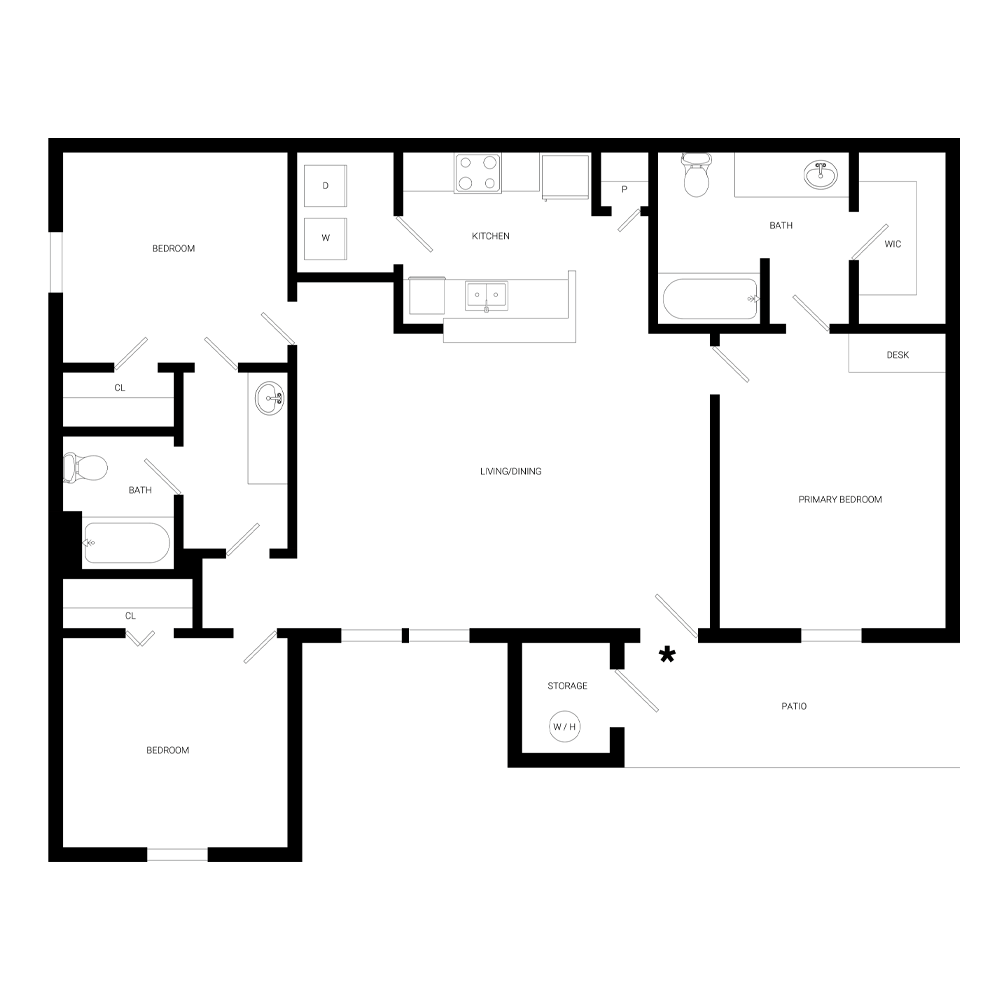 2 Beds, 1 Bath, 880 sq ftAvailable NowModel Gallery