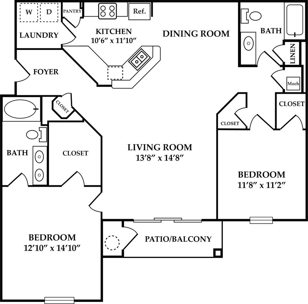 2 Beds, 2 Baths, 1339 sq ftAvailable NowModel Gallery