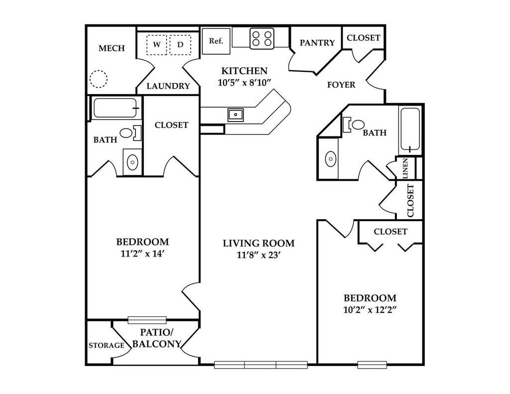 2 Beds, 2 Baths, 1141 sq ftAvailable NowModel Gallery