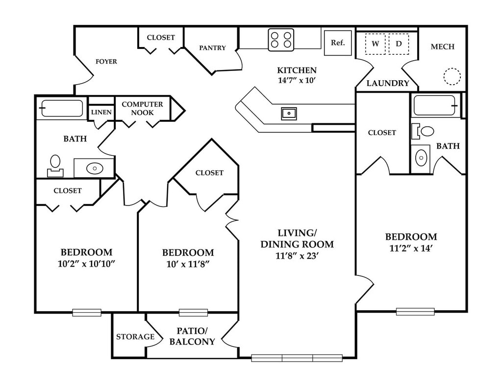 3 Beds, 2 Baths, 1784 sq ftAvailable NowLargest 3 BedroomThis is the largest 3 Bedroom at this PropertyModel Gallery