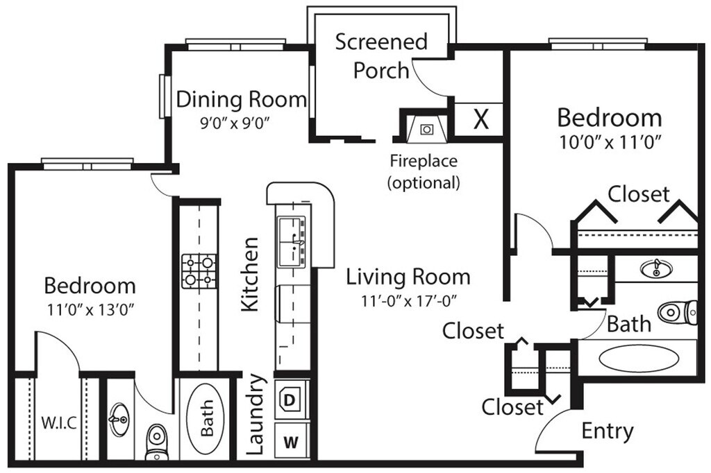 The Hampton - One Bedroom Townhome - Floorplan 2 ![]()