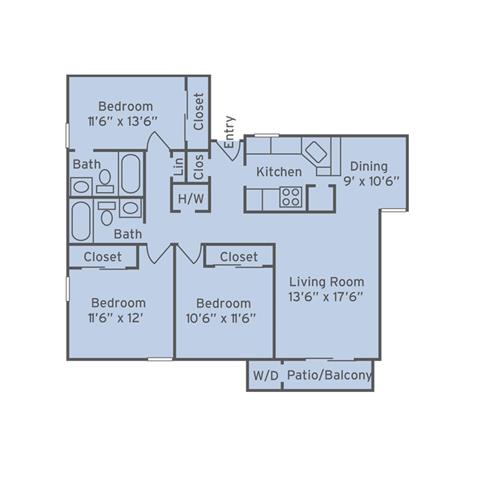 Apartment Model: 3 Bed / 2 Bath3 Bedroom, 2 Bath, 1300 sq ftUnavailable3 Bed / 2 Bath - Floorplan 1