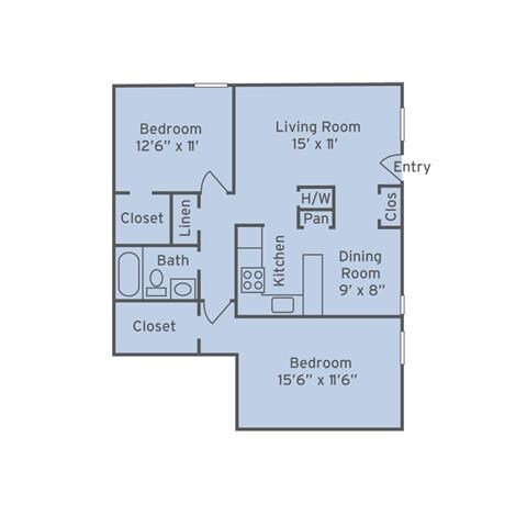 Apartment Model: 2 Bed / 1 Bath2 Bedroom, 1 Bath, 1075 sq ftUnavailable2 Bed / 1 Bath - Floorplan 1 2 Bed / 1.5 bath
