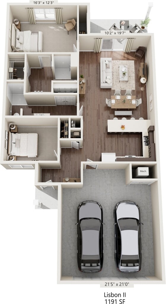 2 Beds, 2 Baths, 1191 sq ftModel Gallery