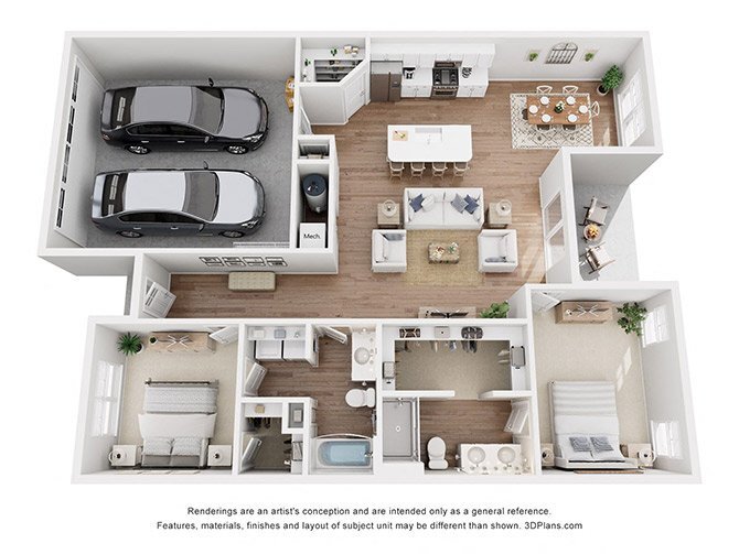 2 Beds, 2 Baths, 1293 sq ftAvailable NowModel Gallery