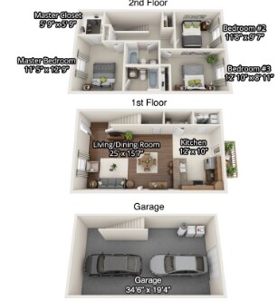 1 Bedroom Townhome with Drive Under Garage - Floorplan 3 ![]()