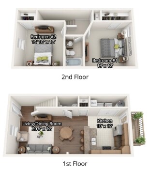 1 Bedroom Townhome with Drive Under Garage - Floorplan 2 ![]()