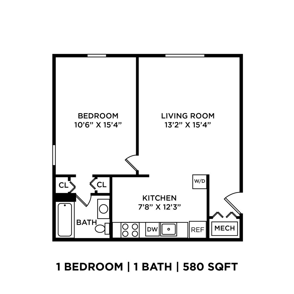1 Bed, 1 Bath, 580 sq ftAvailable NowModel Gallery