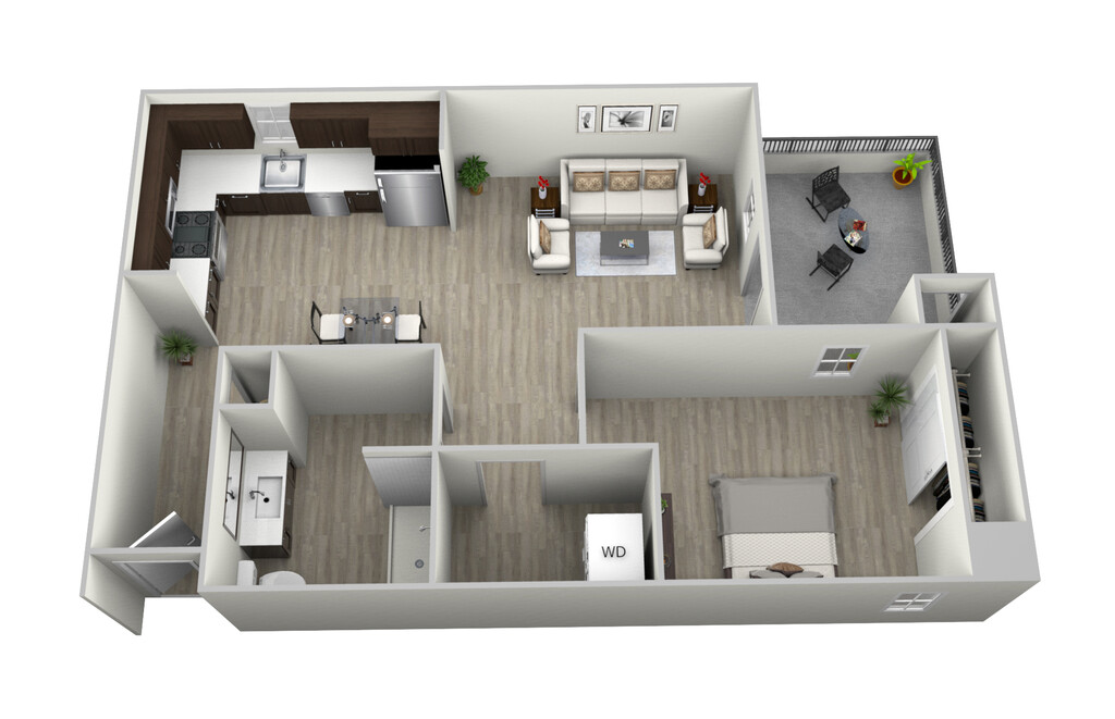 1 Bed, 1 Bath, 634 sq ftModel Gallery
