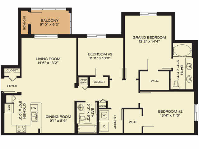 Apartment Model: Royal Palm3 Bedroom, 2 Bath, 1503 sq ftUnavailable![]() - Royal Palm - Floorplan 1