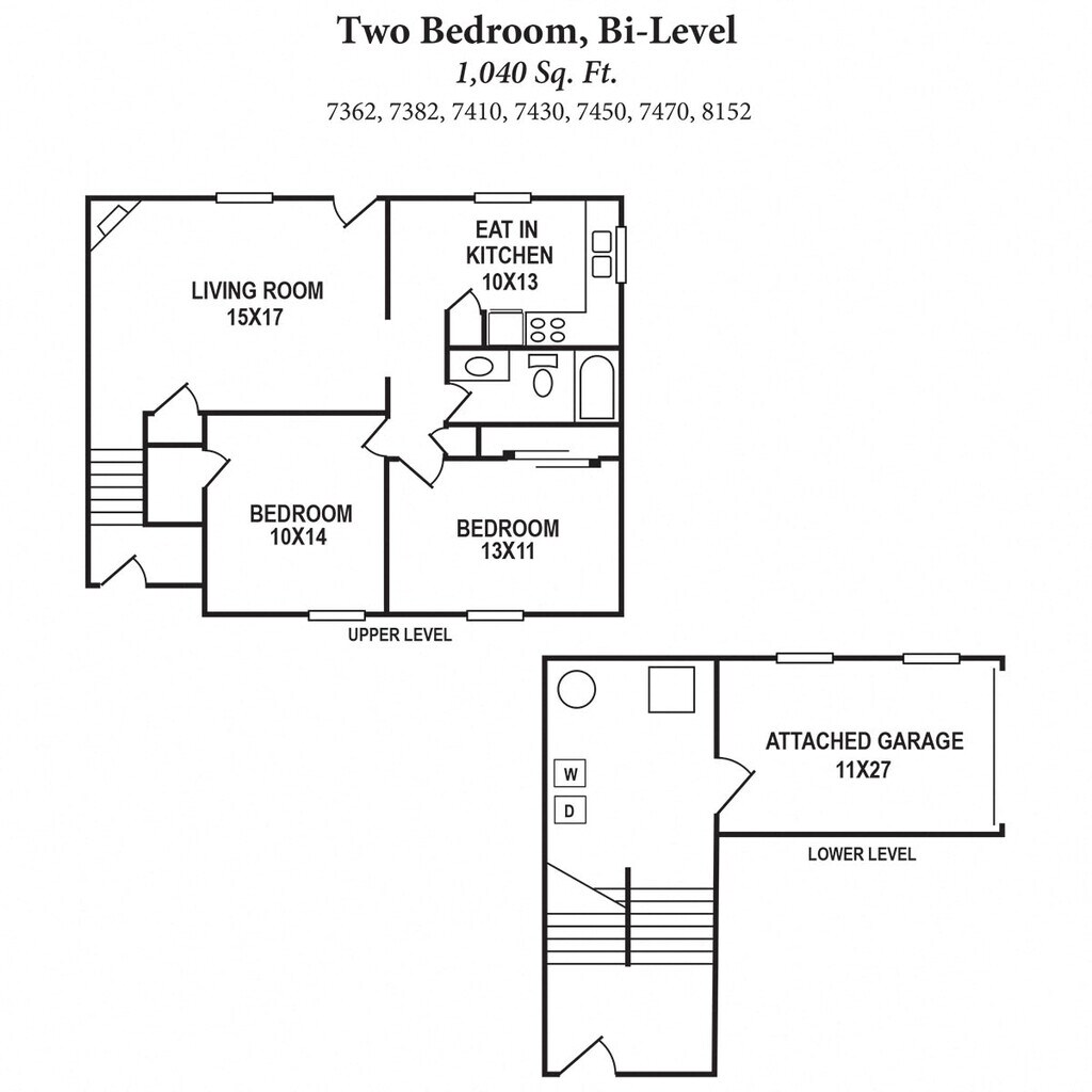 2B, 1B - Bi Level - 7353 - Floorplan 1 2B, 1B - Bi Level - 7362, 7382, 7410, 7430, 745...