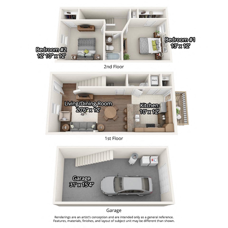 2 Beds, 1.5 Baths, 1024 sq ftAvailable Nov 17Model Gallery