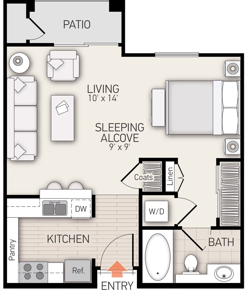 Studio, 1 Bath, 493 sq ftAvailable Oct 29Model Gallery