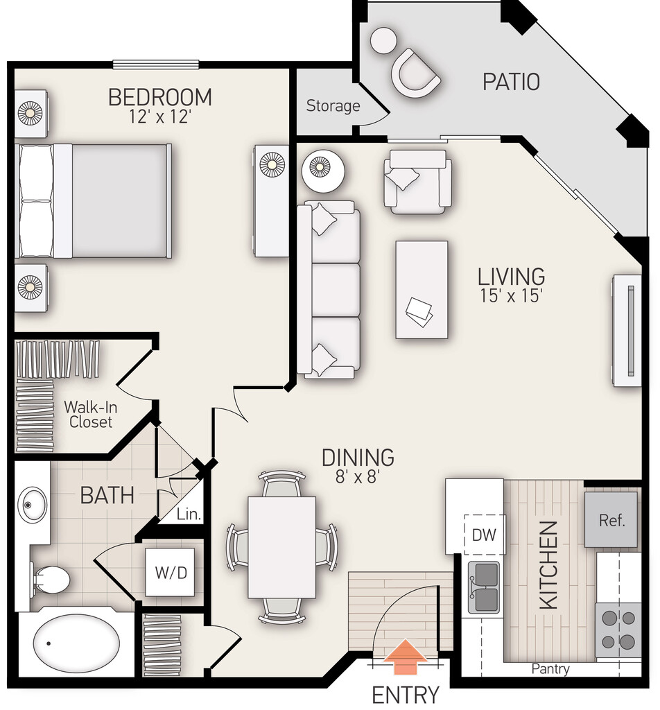 1 Bed, 1 Bath, 725 sq ftAvailable NowModel Gallery