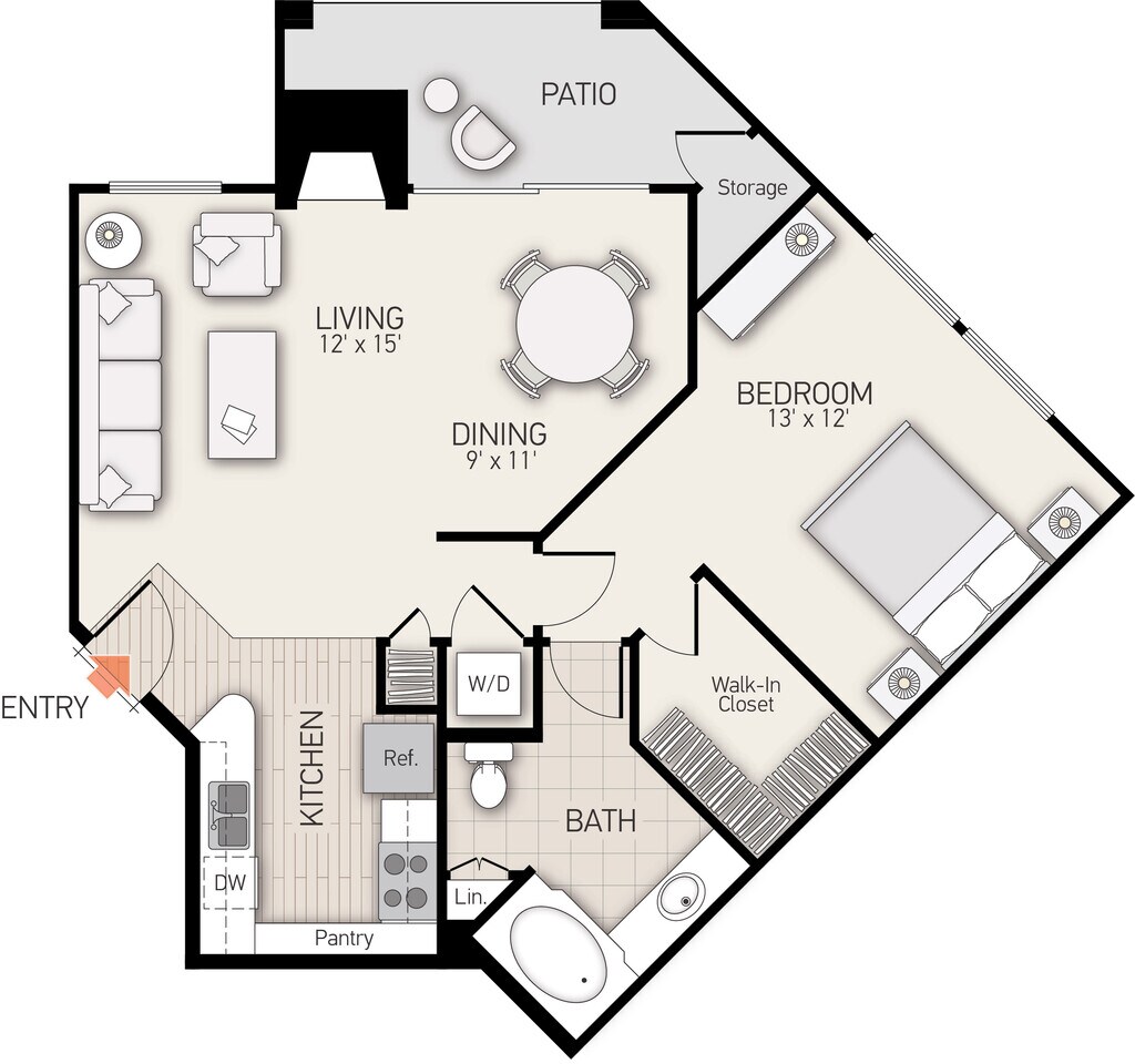 1 Bed, 1 Bath, 710 sq ftAvailable NowModel Gallery