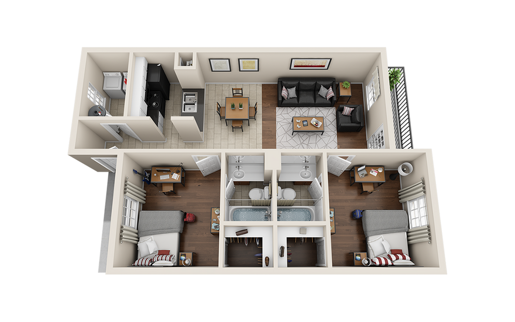 4x4 - Floorplan 1 Apartment Unit: PrivateApartment Model: 4x4$5004 Bedroom, 4 Bath, 1230 sq ftAvailable NowApartment Unit: PrivateApartment Model: 4x4$5004 Bedroom, 4 Bath, 1230 sq ftAvailable August 14, 2026