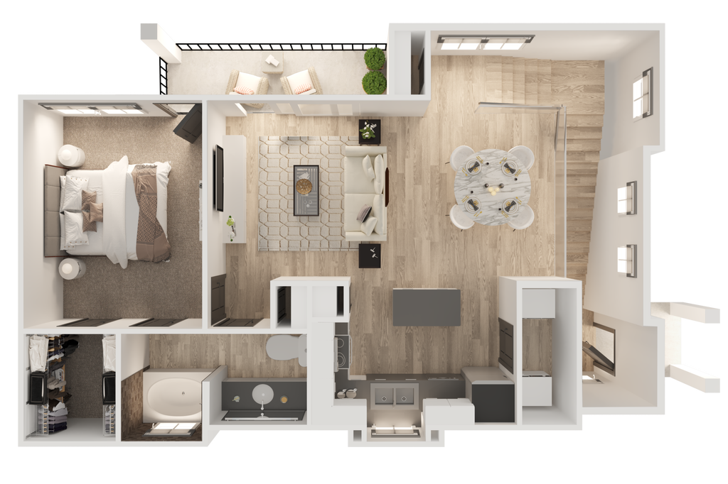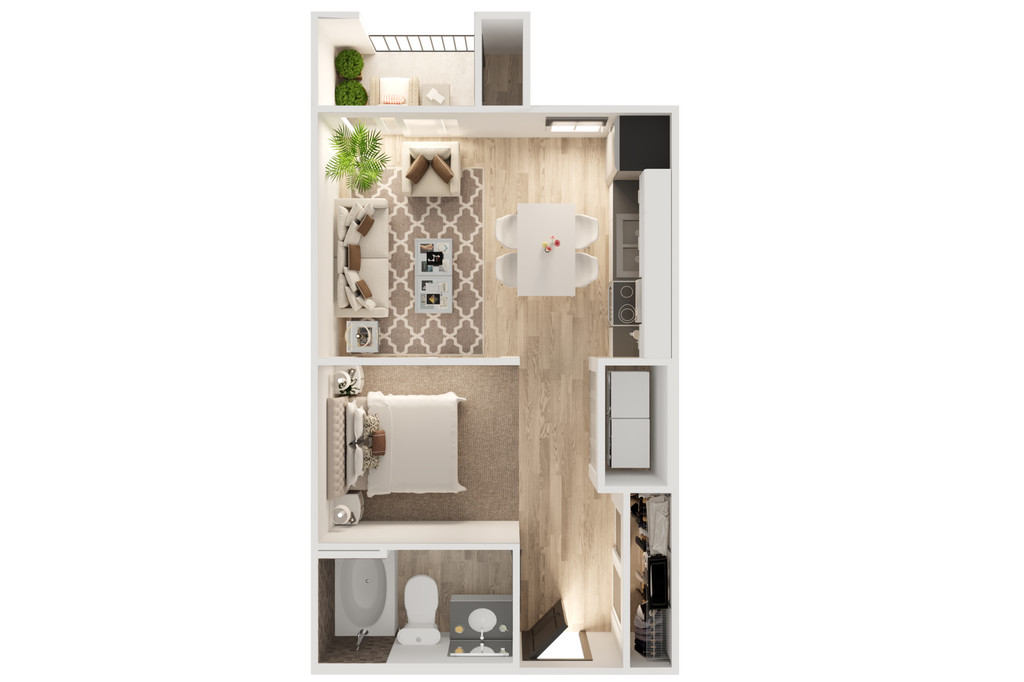 1 Bed, 1 Bath, 584 sq ftAvailable NowModel Gallery