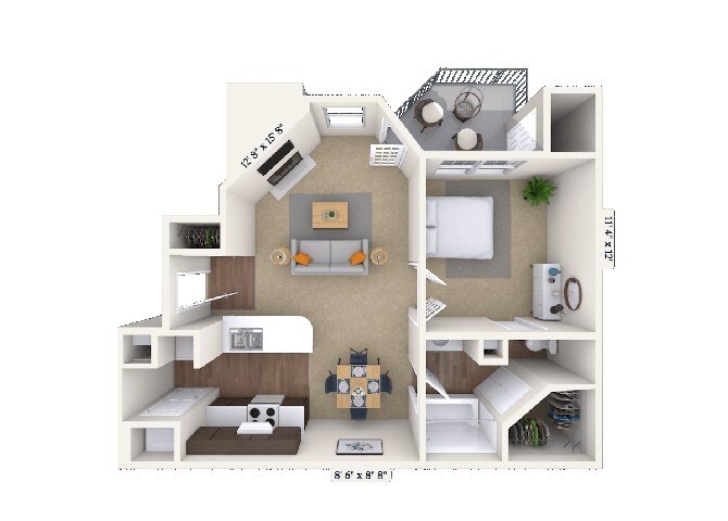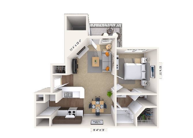 1 Bed, 1 Bath, 717 sq ftAvailable NowLargest 1 BedroomThis is the largest 1 Bedroom at this PropertyModel Gallery