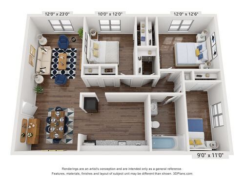 B1 2 BED 1 BATH - Floorplan 2 3 Bedrooms