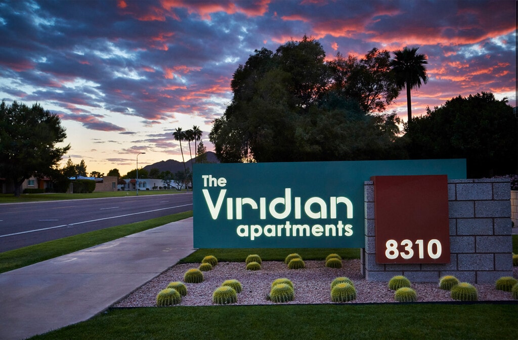 The Viridian Apartments is located at 8310 E McDonald Dr near the McCormick Ranch area of Scottsdale, AZ