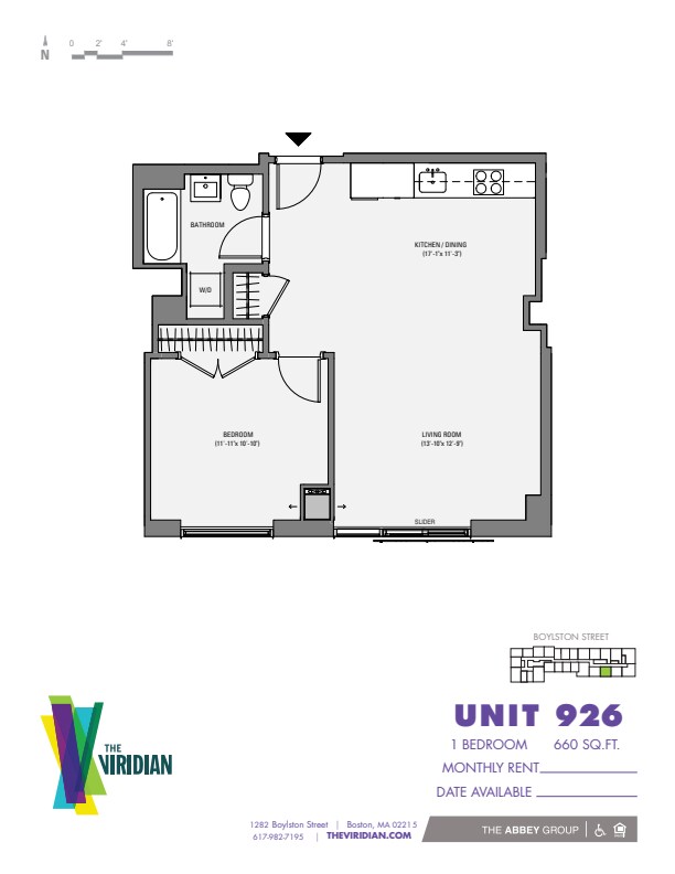 Get lost in the new Fenway and find your way to the impeccably designed apartments of The Viridian. Find your new home. Find your new life. Find Your Element. LUSH URBAN LIVING IN BOSTON Fees: In addition to monthly rent, renters will pay for water and electricity, both of which are utilities sub-metered and provided by third parties. Internet service is also available by third parties but not required. Garage parking is available for an additional $425/month. Pet rent is $25/month. Bike storage is $15/month. First month’s rent and security deposit (equal to one month’s rent) due at lease signing. ***Disclaimer: These photos are representative of like-kind units and may not reflect the actual unit available to rent.
