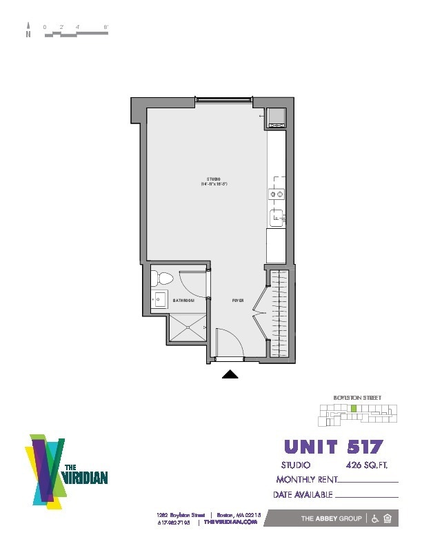 The Viridian is located in the Fenway Neighborhood and 02215 Zip code of Boston, MA.