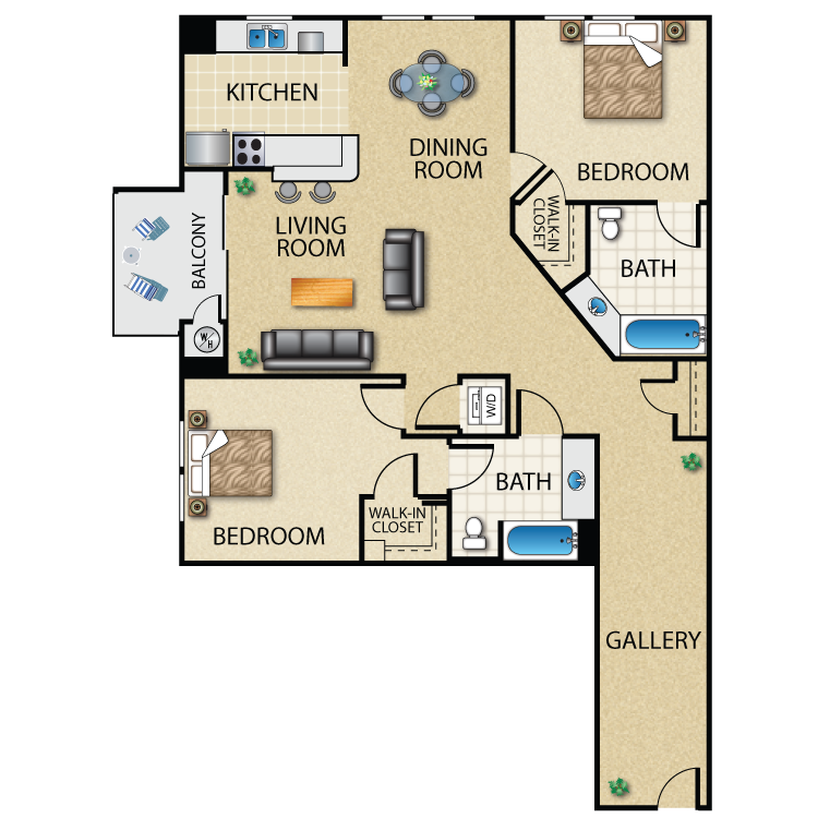 2 Beds, 2 Baths, 979 sq ftAvailable NowModel Gallery