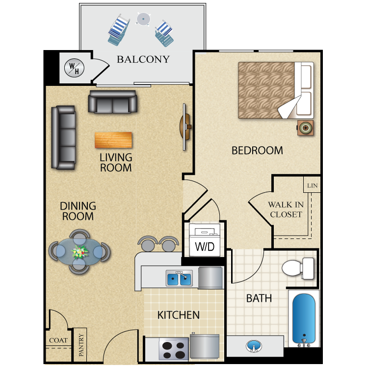 1 Bed, 1 Bath, 641 sq ftModel Gallery