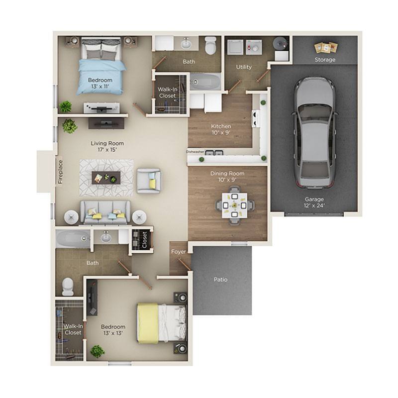 2 Beds, 1.5 Baths, 960 sq ftAvailable NowModel Gallery