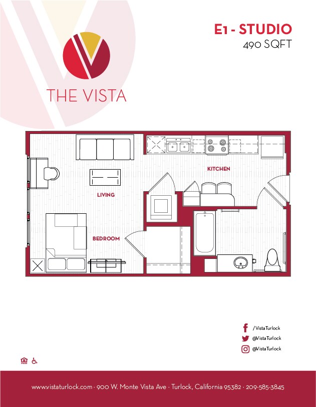 Apartment Model: E1Studio, 1 Bath, 490 sq ftUnavailable![]()