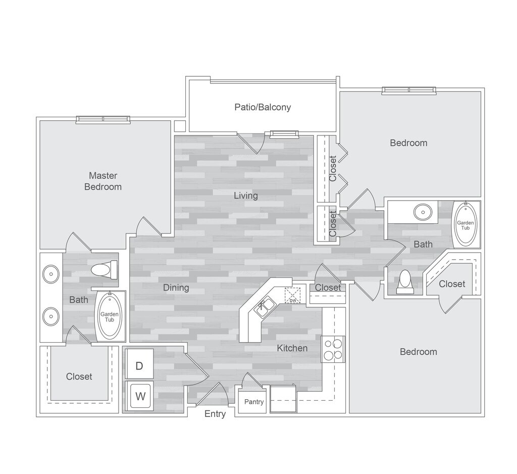 1 Bed, 1 Bath, 715 sq ftAvailable NowModel Gallery