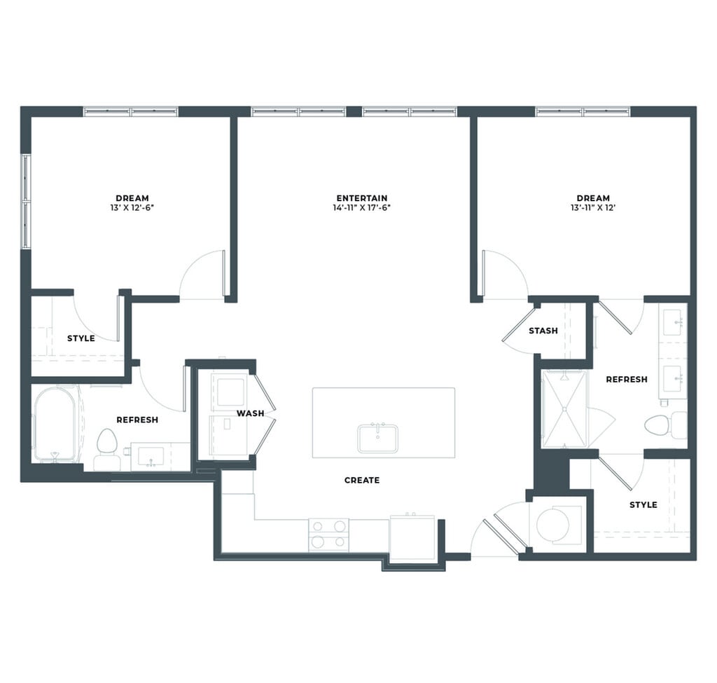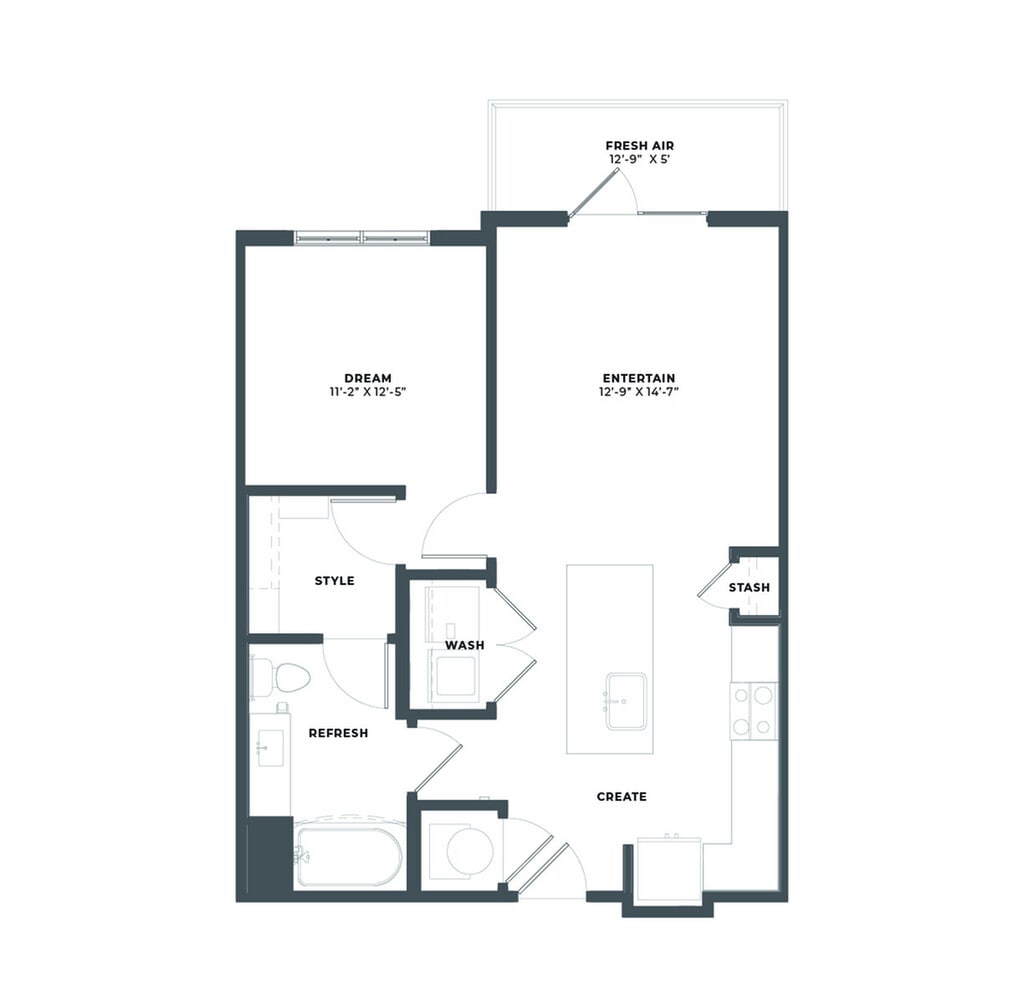 Studio, 1 Bath, 646 sq ftAvailable NowModel Gallery